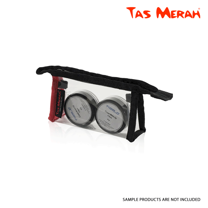 Tas Merah Transparent Makeup Pouch - przeźroczyste kosmetyczki zamykane na zamek błyskawiczny. Wykonane z PVC wzmocnionego materiałowymi wykończeniami.